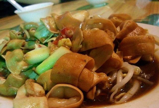 虽说肠粉是从广州起源的,可在潮汕,肠粉的内容意义更为丰富,猪牛鸡任君选择,可以配上鸡蛋、蚝、虾仁、番茄、青菜等,层次丰富而不复杂,配合默契,俨然一体!