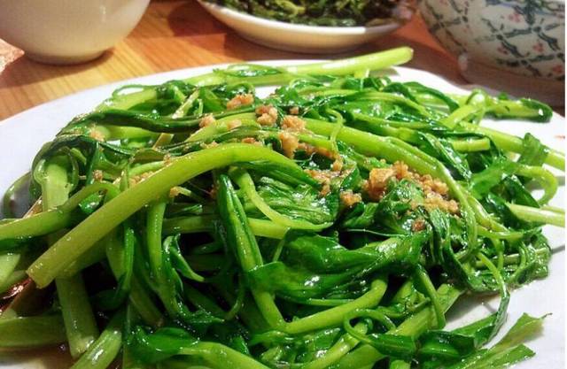 夜粥摊档的炒青菜也是别有一手。香葱爆蒜,热油速炒,仅仅只是一盘素菜,香味足矣把从几十米的地方吸引过来。