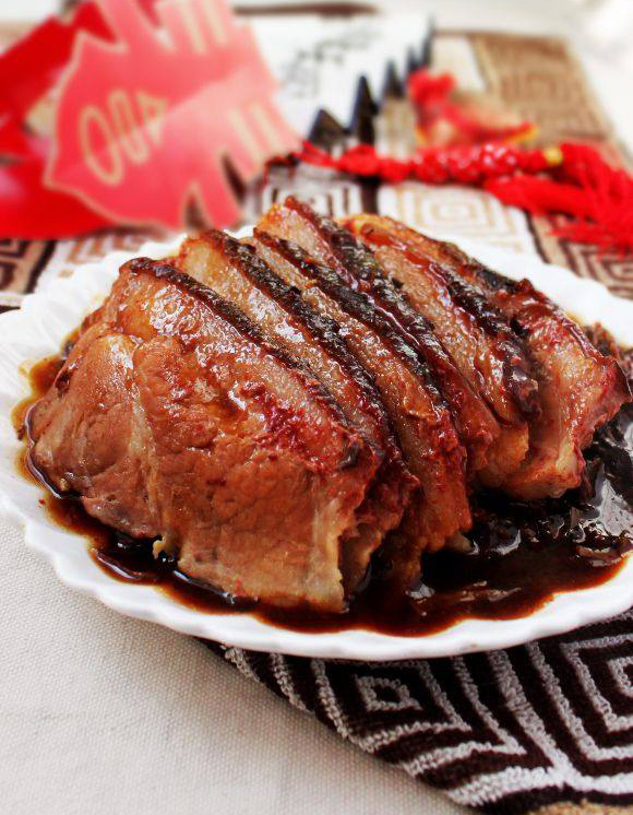 五花肉,梅干菜,葱,姜,花椒,八角,生抽,老抽,糖,盐,鸡精,干辣椒,腐乳汁,叉烧酱