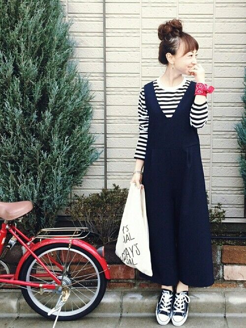 想要将经典的横条纹内搭T穿出不同的风格,一条宽松版型的背心阔腿裙裤便能实现哦!