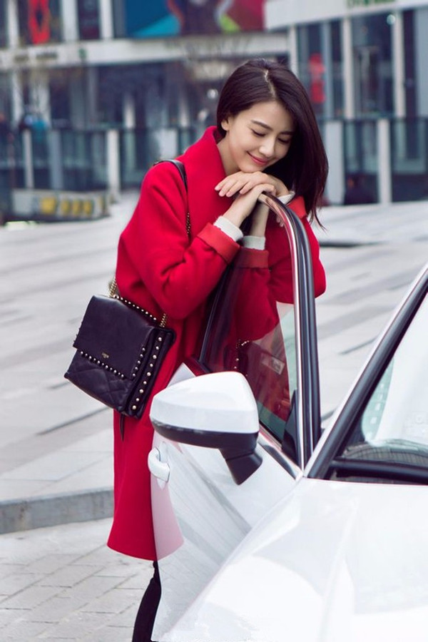 红色大衣+白色上衣+黑色小脚裤装 宽松版型的红大衣,与简约的黑白配,天生就是大气美丽的红人!