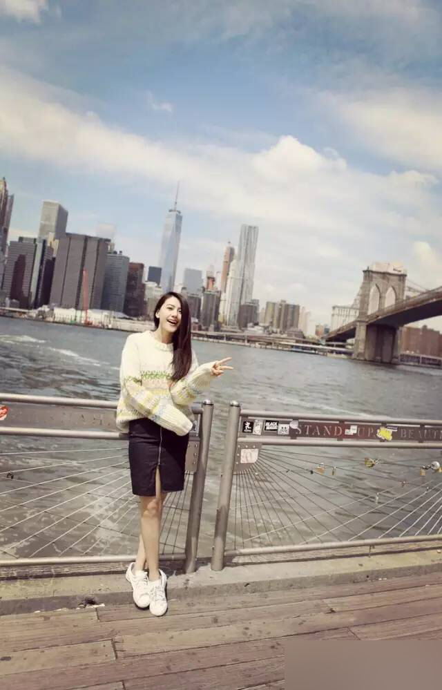 oversize的毛衣搭配裹身裙,小白鞋依旧是高圆圆的最爱,这样的搭配很实穿。