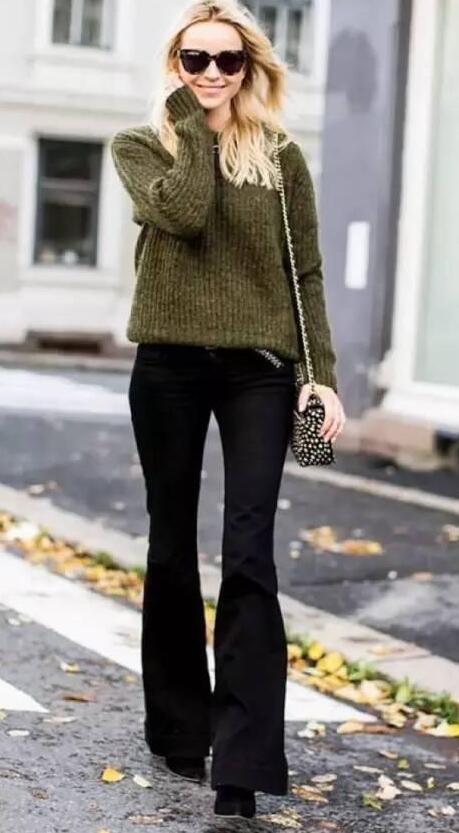 【微喇牛仔搭配毛衣】穿出复古腔调,有型又有品