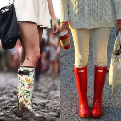 在英国著名的格拉斯顿伯里音乐节上,时髦人就纷纷以标志性的雨鞋造型出场。所以,你可以见识到Hunter此时成了人脚一双的宠儿。