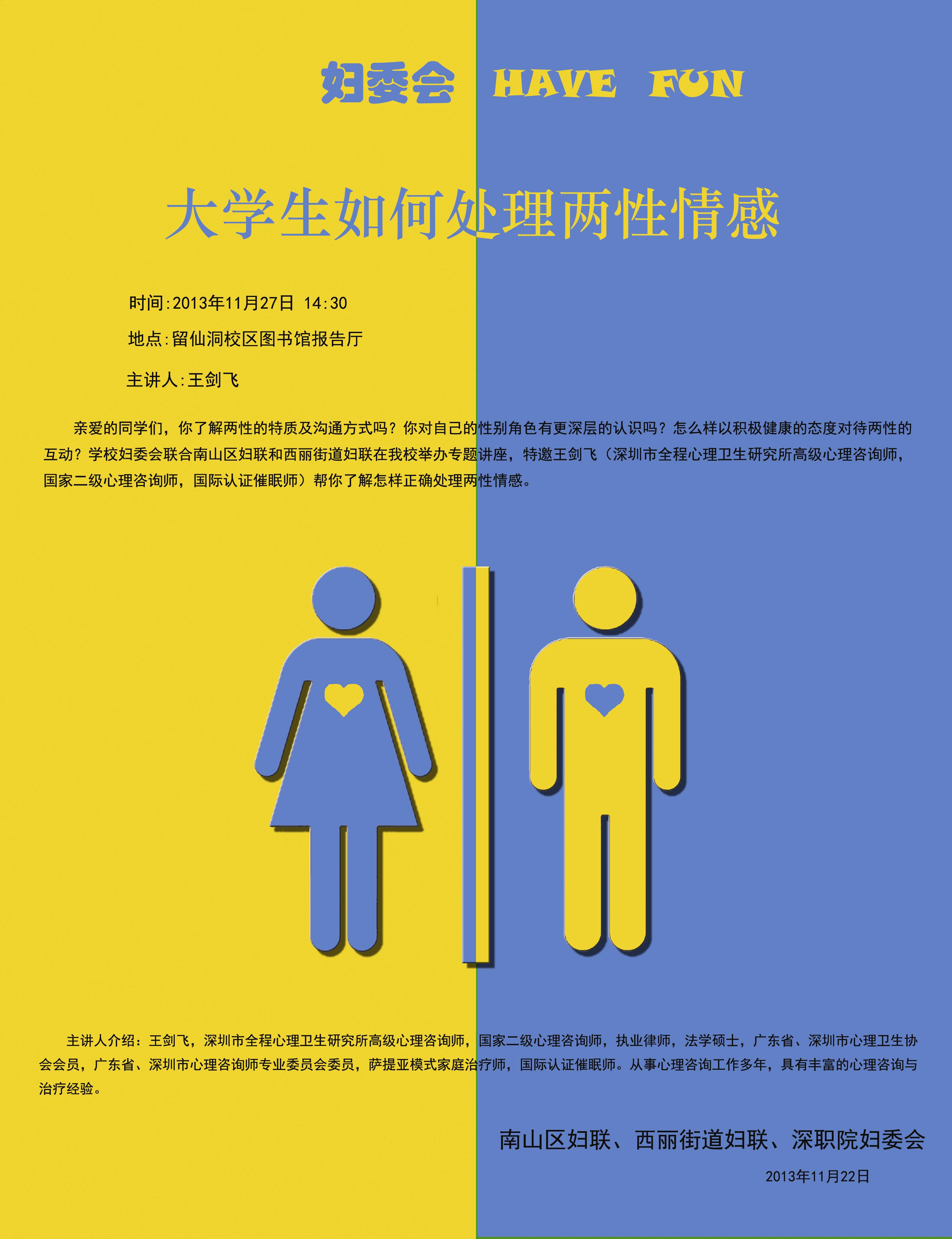 讲座题目:大学生如何处理两性情感