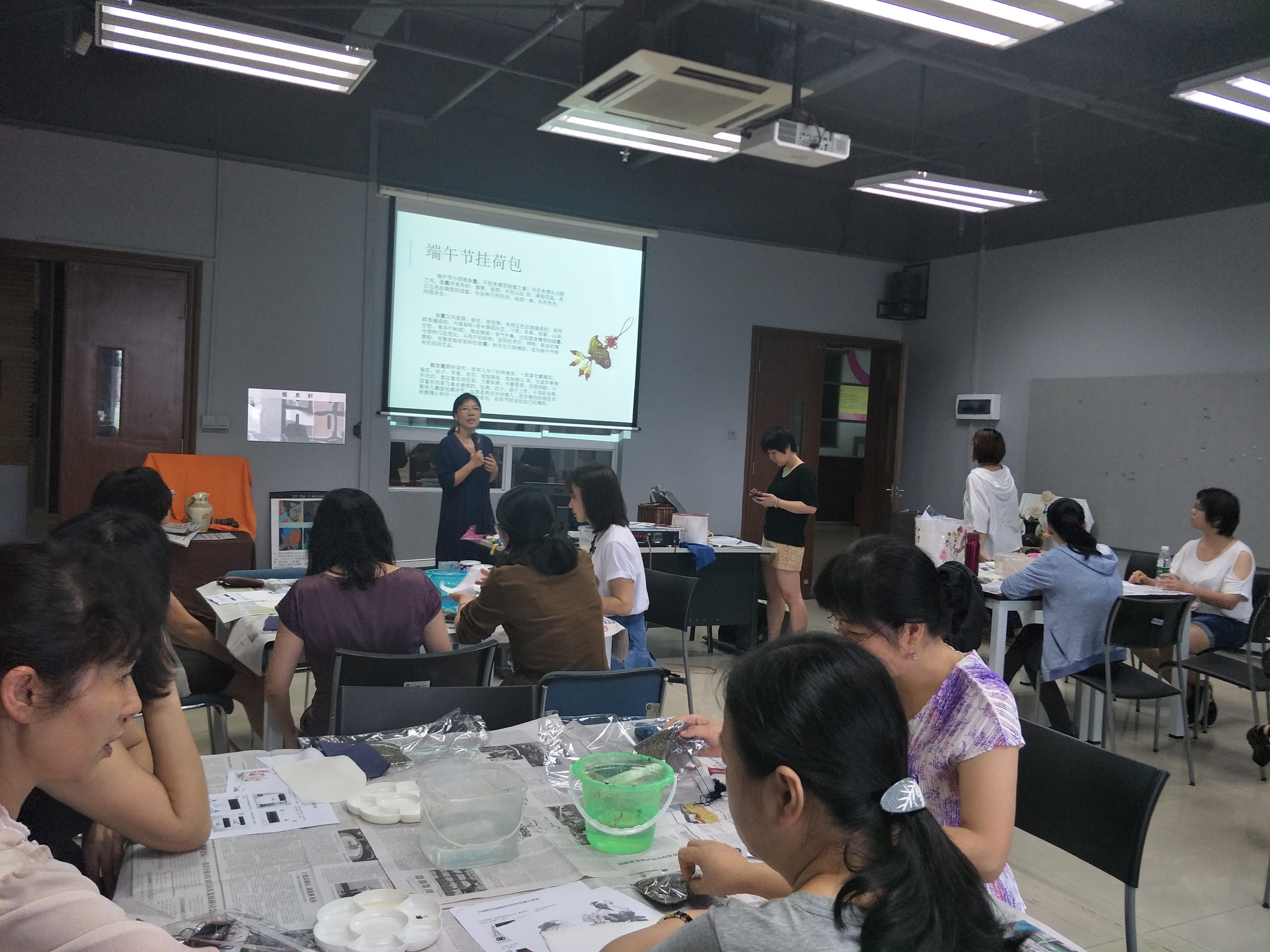 再过几天将迎来我国的传统佳节端午节,香囊制作是我国民间的传统手工技艺。端午节佩香囊,不仅有驱邪避瘟之意,而且有襟头点缀之风。香囊内保有各式香料,外包丝布,清香四溢,再以五色丝线弦扣成索,作各种不同形状,结成一串,形形色色,玲珑夺目。本次的香囊手工制作中,陈老师在开始环节教大家用丙烯颜料绘制了一幅国画小品,更添加了一分绘画乐趣;之后陈老师教大家缝制精巧的香袋,后制作出香袋填入芬芳的薰衣草,便成了独一无二的古风香囊。